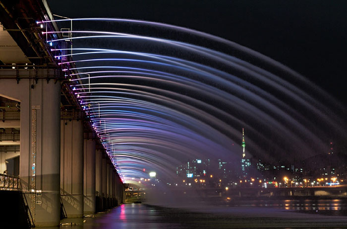 程よい時間になってので、盤浦大橋のレインボー噴水へ。駐車場から橋まではちょっとした距離があり二人 並んで向かいます。